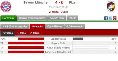 Bayern München - Plzen Félidő/Végeredmény Bayern München/Bayern München 1,30 Nyertesmásik: