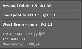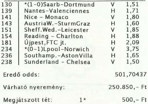 238 Sunderland - Chelsea V 1.50300 forintra egész csinos összeget hoz már, úgy 19180 forintot...nem rakom(!), de kiváncsi vagyok...