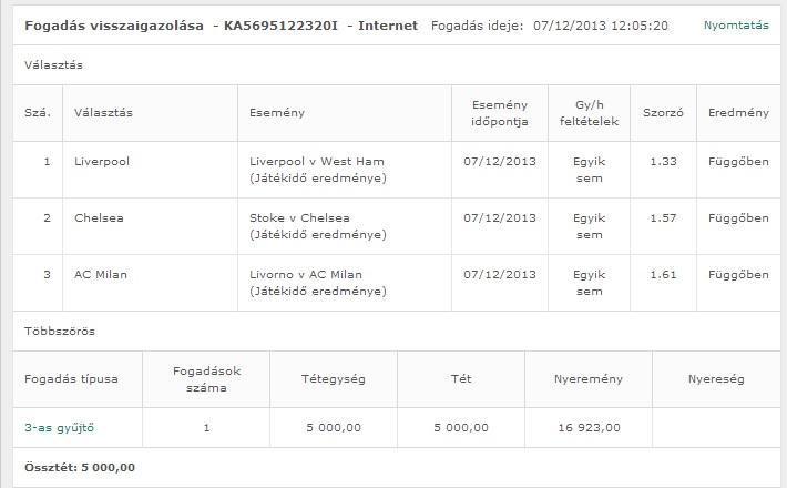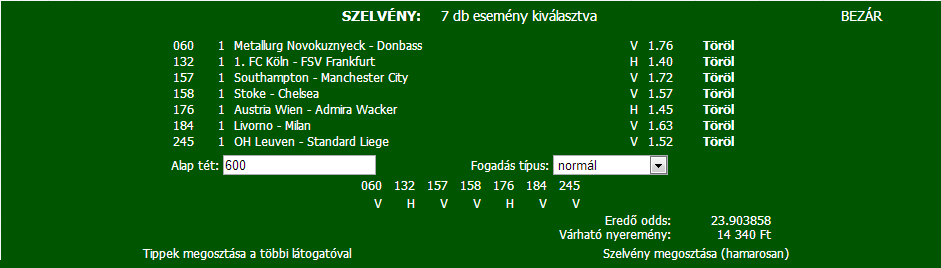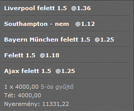 Na megraktam 500Ft-ért, 11.00 odds-ért.