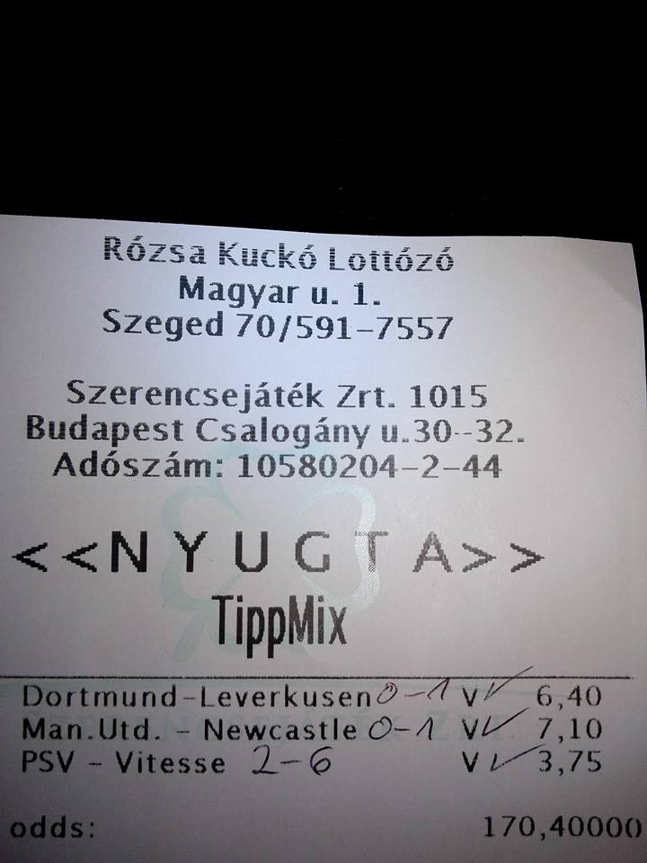 Ráadásul, nem elég hogy megint idegesít, hogy 1-en megy el, (megjegyzem majd jönnek megint az okosok, hogy sokat teszek, de hát hiába mondom hogy rakhatok én 4-et, vagy 13-at, akkor is 1 megy vagy több, de ha több akkor nem is érdekel) még szinte a legkisebb és legbiztosabbnak tűnő meccsen.