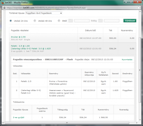 Na akkor megcsinálom a visszafogadást, nagyon nem akarok bukni, főleg hogy tegnap 8/8 meccsem jött...
