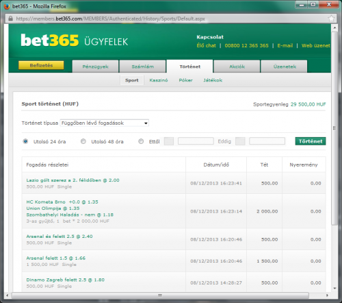 ó, most látom, hogy a bet365 visszafizette a Standard Liege tétjét, mert 0-0 lett