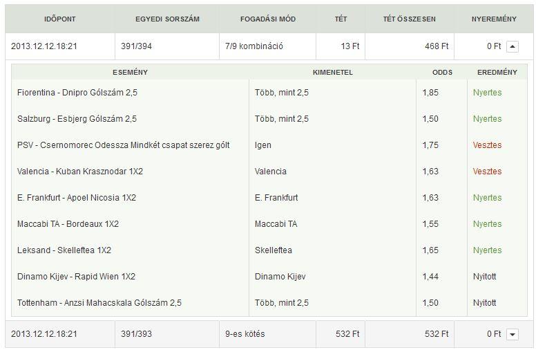. Ha megrakom a Ludogorecet is, akkor 9 ezret nyerek, de nem mertem
