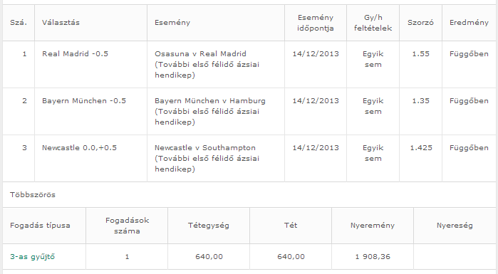 Nézem mennyire jól áll eddig a szelvényem, majd rá megyek az én meccseimre és 2-0 az Osasunanak