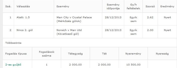 2-es gyűjtő, 1 bet * 10 000,00 HUF