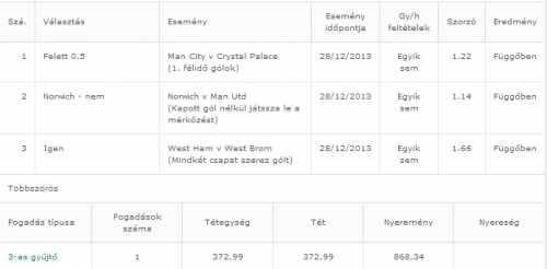 2k ment a Sunderland gólra (1,53)