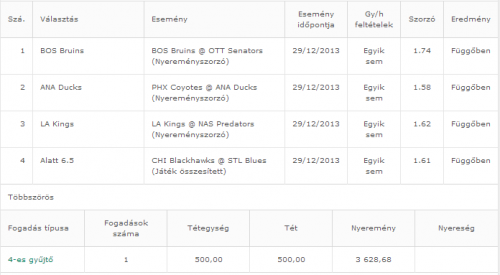 (Játék összesített - élő fogadás) 28/12/2013 Egyik sem 1.83 VesztettHát persze hogy a hosszabbítást is bele kell számolniuk