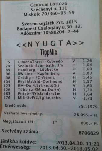 Várható nyeremény: 24830 Ft -