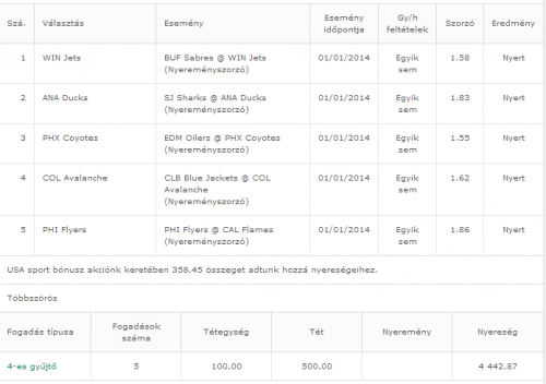 4-es gyűjtő, 1 bet * 1 800,00 HUF 0Jól indul ez az év is.