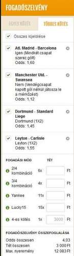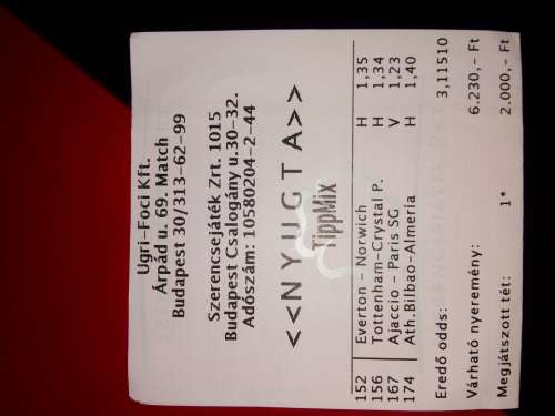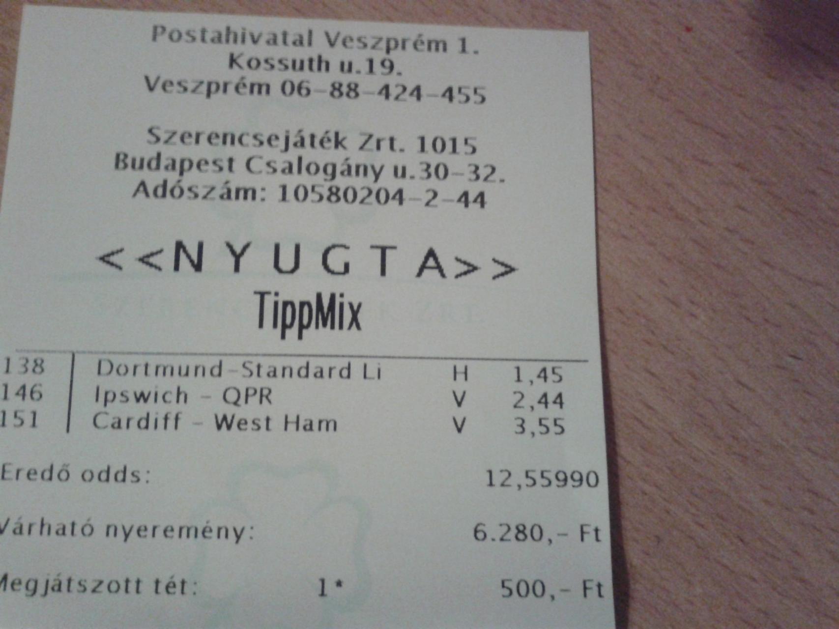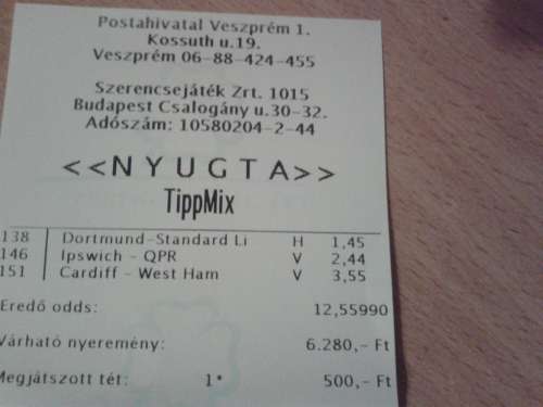 Aaaa, az elejen meg arra is gondoltam, hogy 5k-val meglokom a West Ham + Chelsea + MU triot, most ezt a West Ham gyozelmet, pontosabban X2-t nagyon ereztem, de inkabb a biztosabbat valasztottam, es a Lazio-t raktam a West Ham helyere, na meg a tet is finom 300 Ft, de legalabb a bankom epulget...