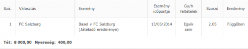 Rakom hogy a Basel meccsen nem lesz gól (30 euro) a kezdetektől fogva felajánlotta hogy menet közben kivehetem, gondoltam az utolsó 7-8 percnél kiveszem ha még jó lesz, erre rögtön elvette ezt a lehetőséget. ó ha most cseszek rá...