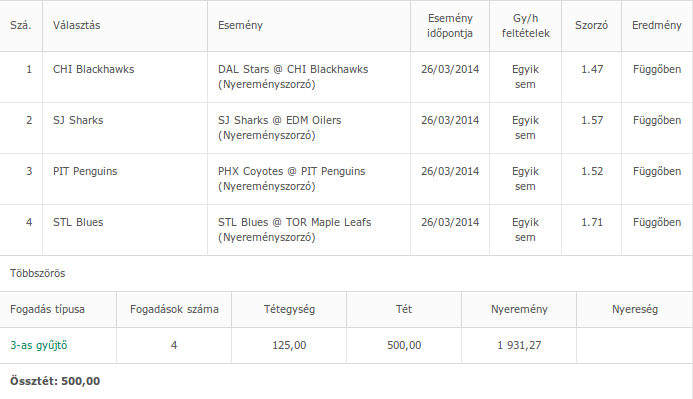 20 perc alatt 6 meccsből 4-en azok vezetnek, akiket raktam. Hajrá!