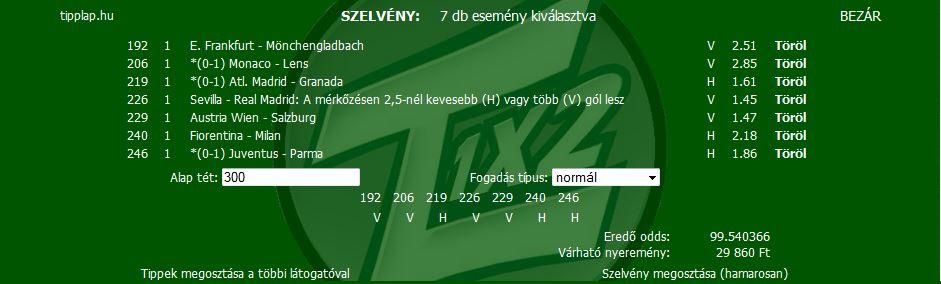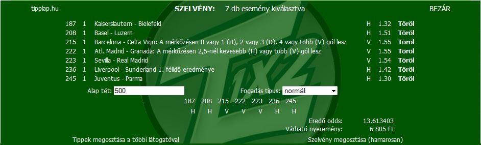 1 ahol vesztésre állnak, és 1 X. 13 meccs, 11-es kötésben van, ha csak ez a kettő megy, az még nem is érdekel, de ott van még az a 3 db 1-0-os meccs, ahol elég 1 hiba...