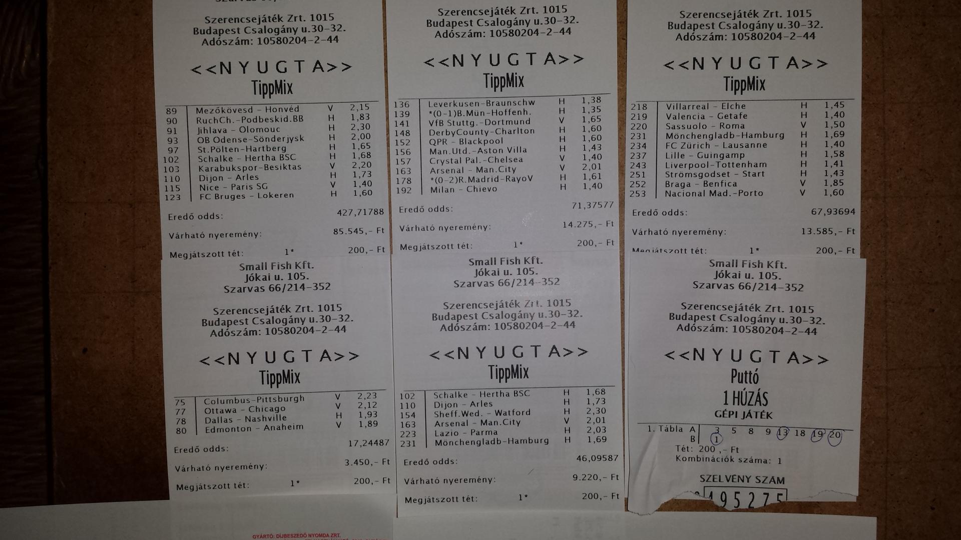 Évek óta játszom, de eddig még kombiba sosem tettem. Legnagyobb nyeremény olyan 25k közeli volt. Volt sok kisebb nyereség, sok bukó is