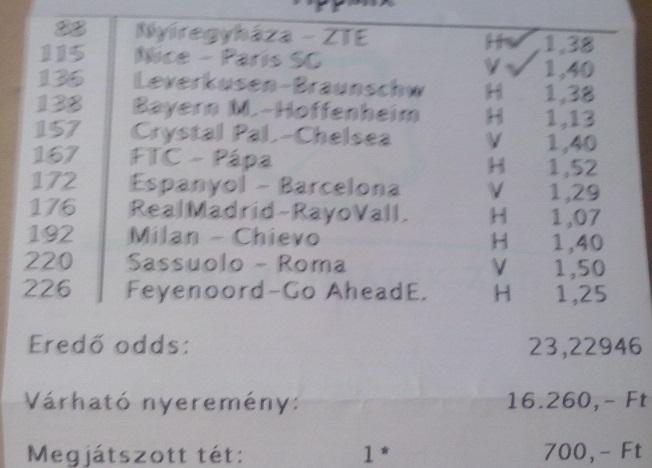 Megint 1 meccsen úszott a szelvényem, már fel sem veszem