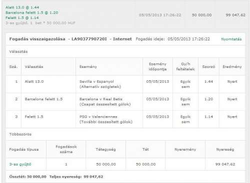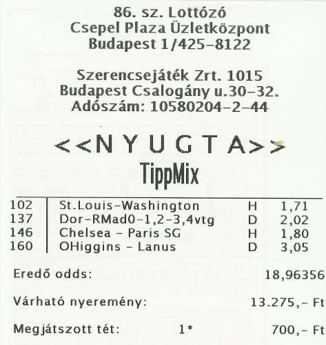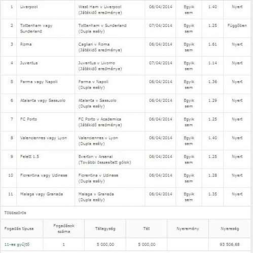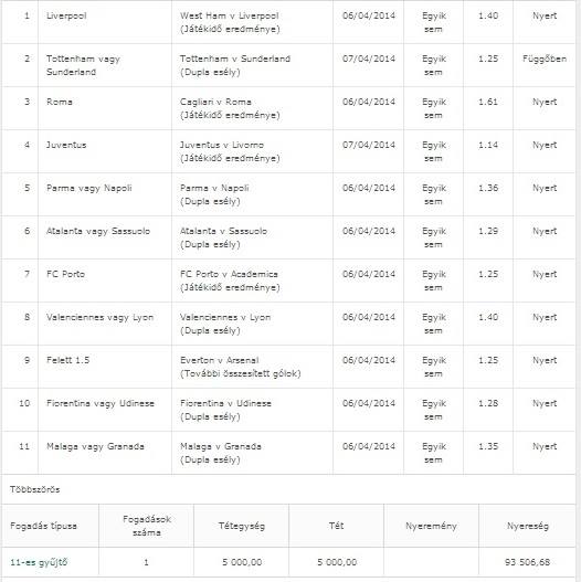 (Játékidő eredménye) 07/04/2014 Egyik sem 2.10 Nyert