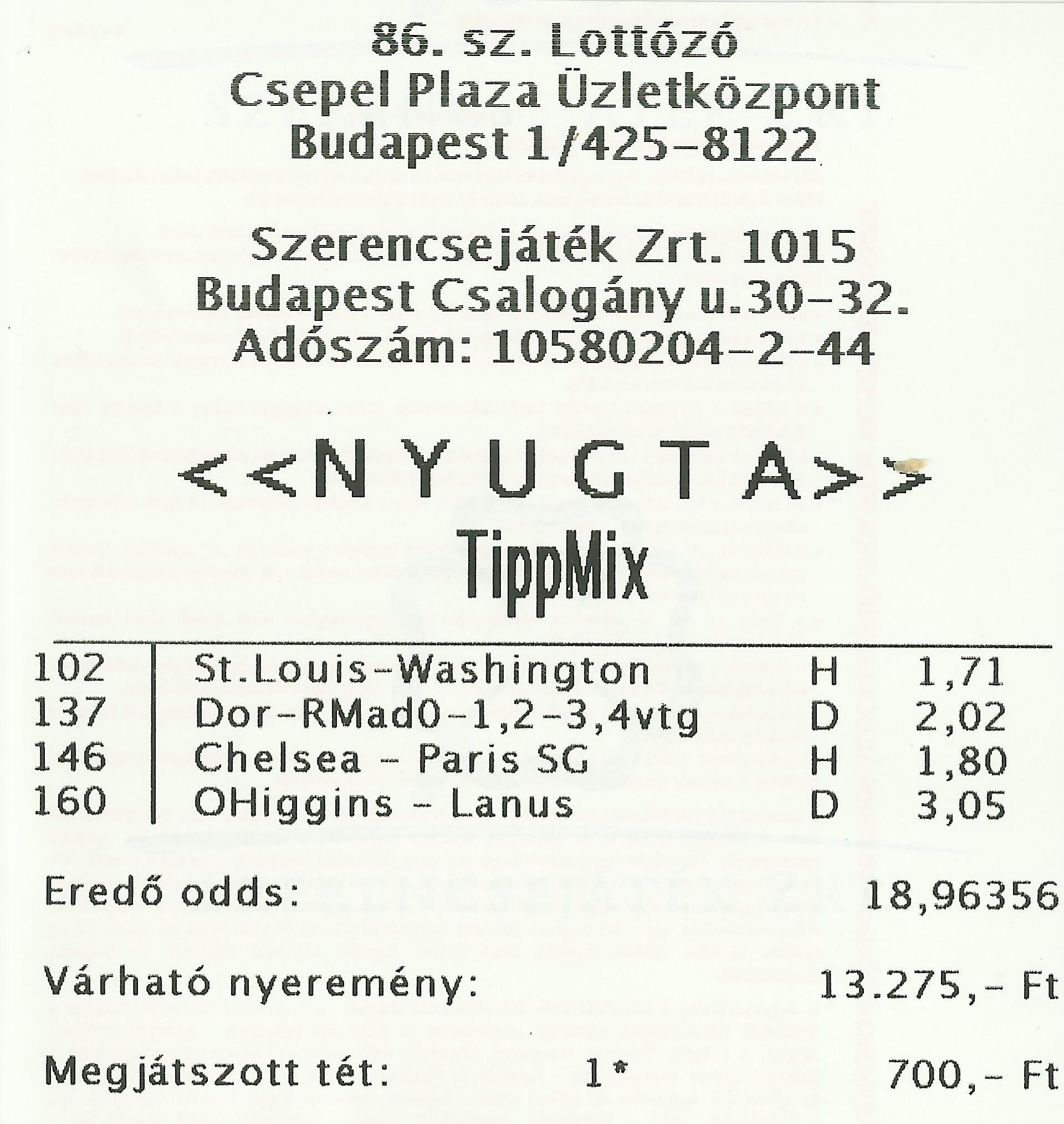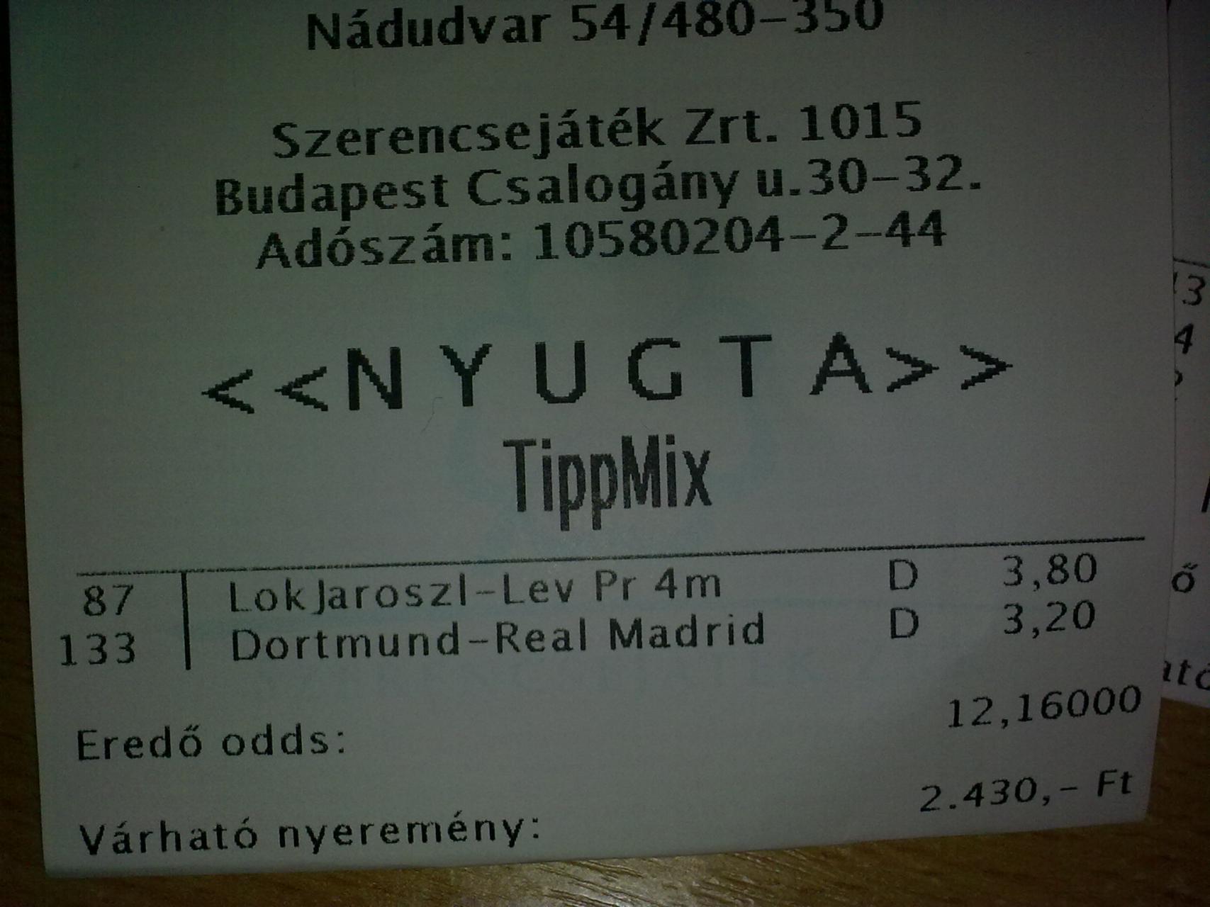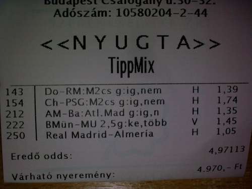 Tegnap is a egy.. a szemét FÜRTh vitte el! A másik 8 meccs simán jött.