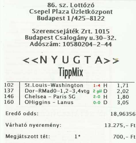 eddig 7/0 , szerintem keresek másik sorsjegyet.