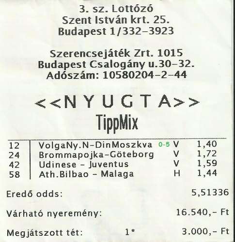 3000 forinttal lett pakolva Juve + Dinamó + Göteborg + Bilbao, 16k a várható...hát kiváncsi leszek.
