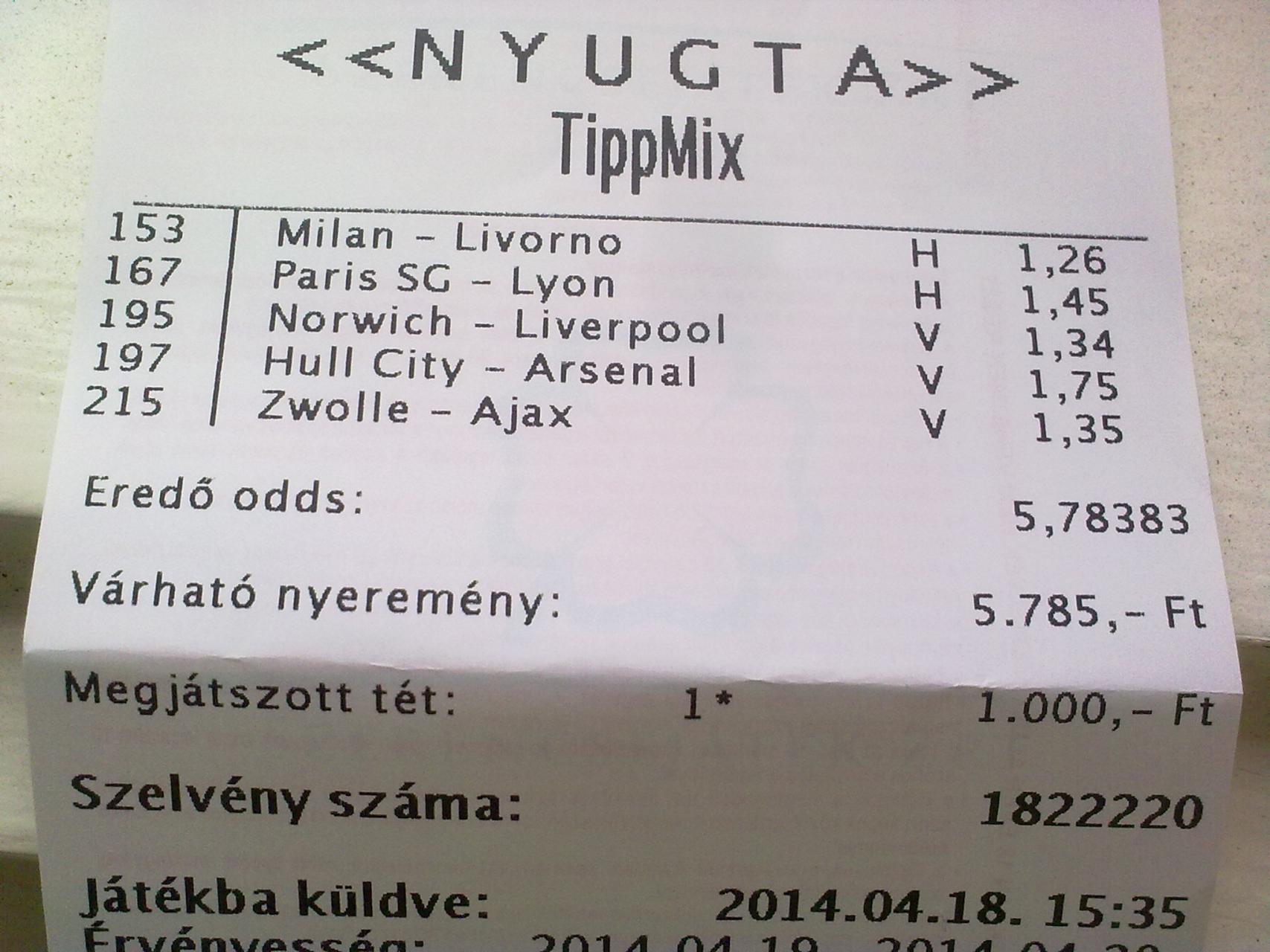 3 szelvényt pakolgatok, mert a tippmix igen drága, nem locsolunk ingyen Máma!