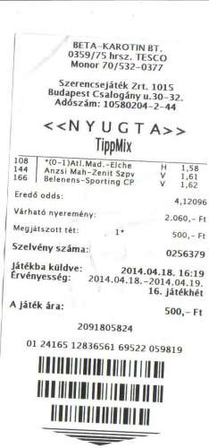 Hétfőn akkor bevásárlok ebből a nyerő négyesből veszek 10 et 5 ezerért kiváncsi vagyok mennyi fog nyerni. -