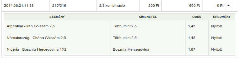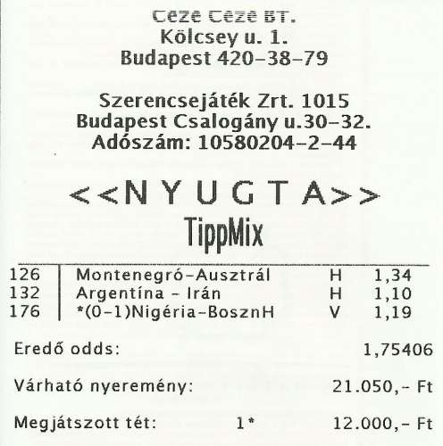 Argentin 0-2 HDe kellene egy nagyobb tétes tutista,csak ezen még filóznom kell