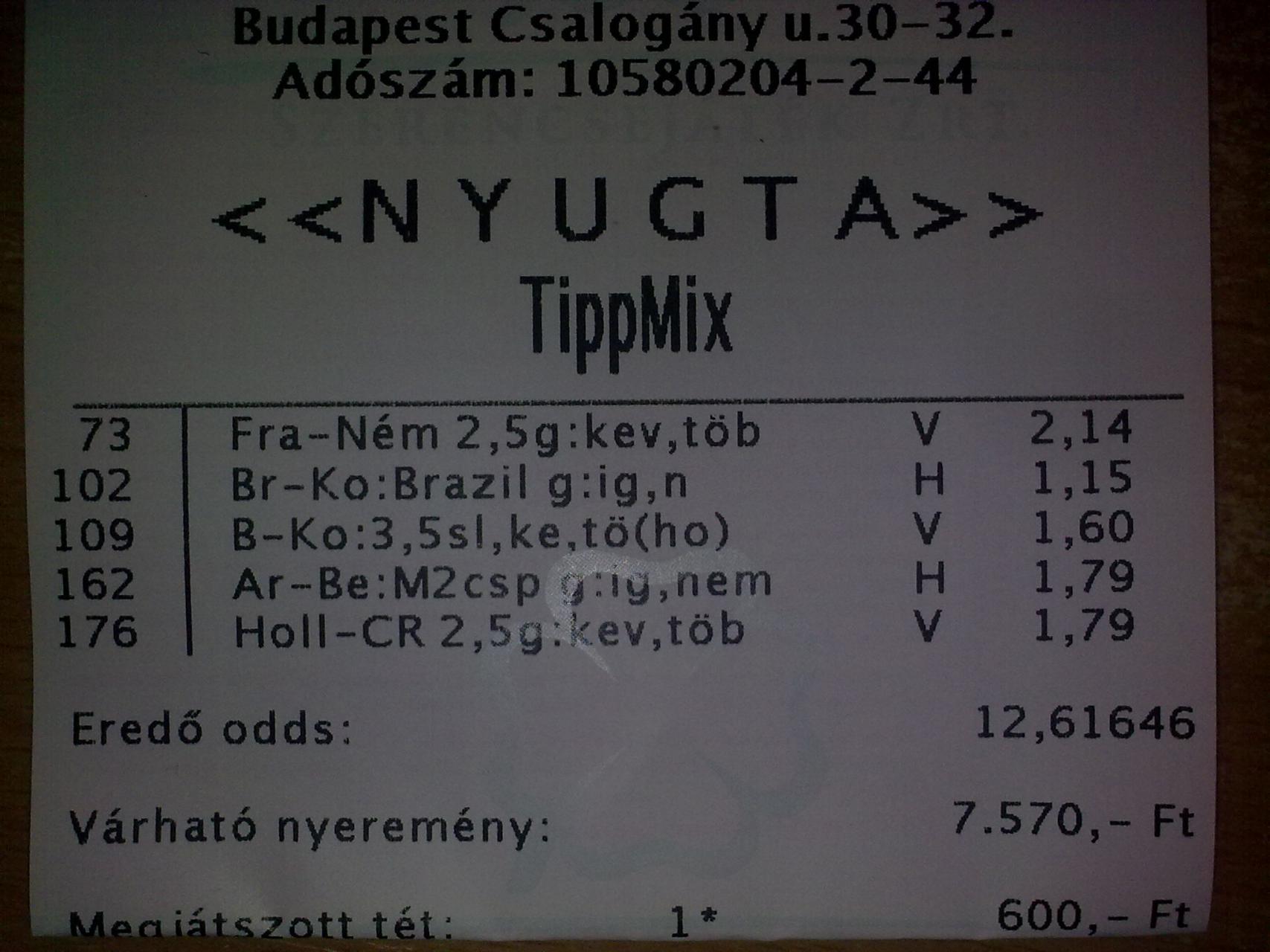 holnap mit mondtok ki mire tesz? érdemes tenni 20 ezret a brazil továbbjutásra vagy egyáltalán nem biztos? Brazil + 1 el, mire tesztek ?