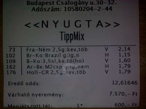 Tutifix, hogy a jövő héten veretem a ratyisgyőrt, ha jó odds lesz rá... meg fogja érni...