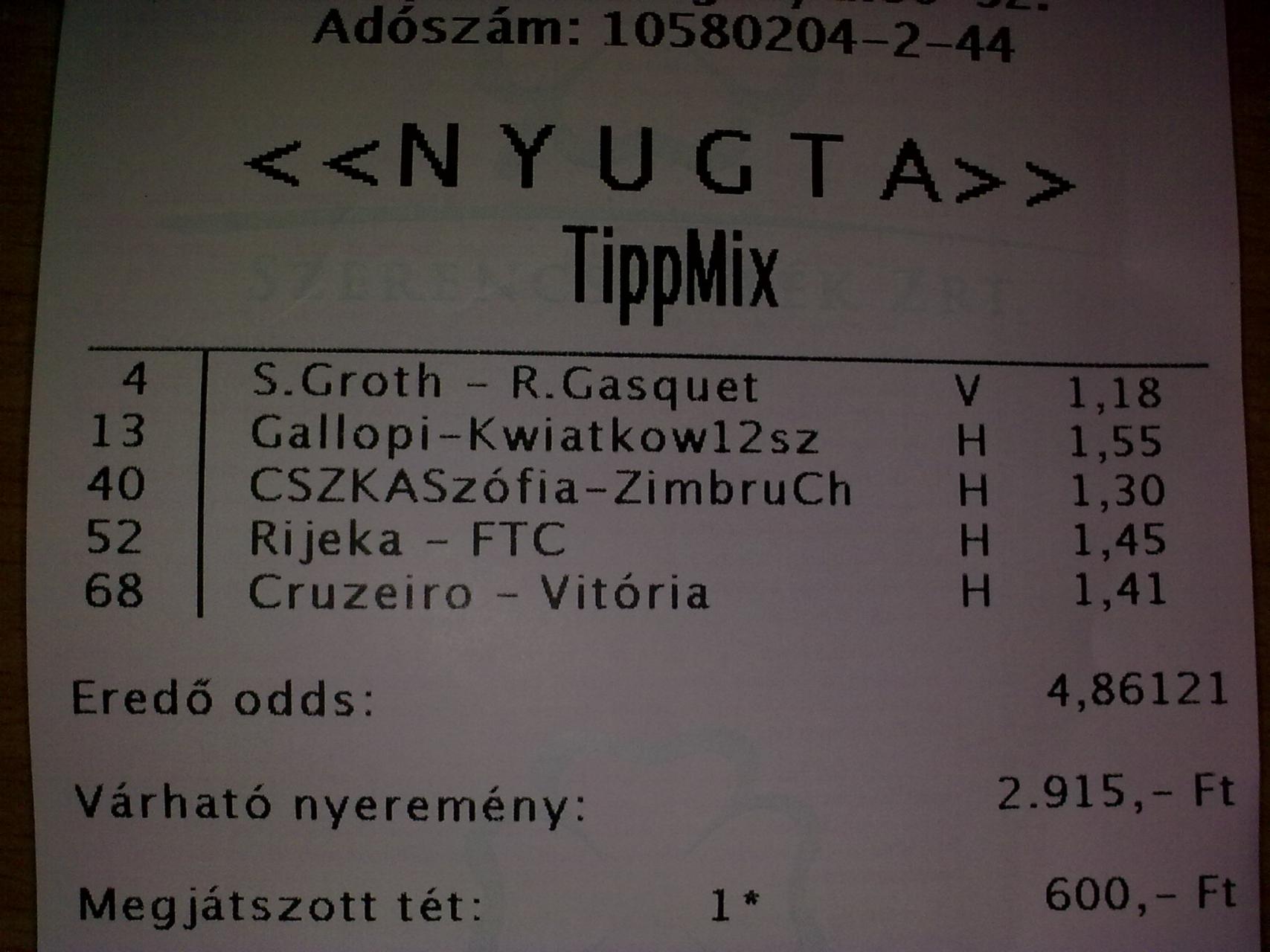 10-es oddsért... szépp -
