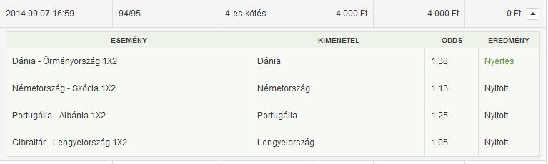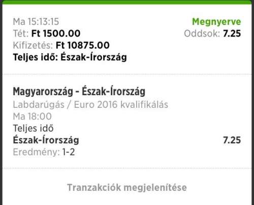 Én nem bírtam ki, annyira rossz ez a mostani válogatott, hogy ment egy ezres a félidő V-re, +az Észak-Ír győzelemre 1500. Elég szépek a szorzók és nem tudom miért, szerintem most nincsen ekkora különbség a válogatottunk és ezek között...