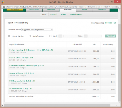 (de ez csak azóta működik, amióta a kis megtermelt +-t nem szóróm el az idióta kamikra...)itt már nem vakon, csak az oddsokat nézve, szimpátia alapján eseményválogatás, lehetőleg 2 esélyesekből, (tenisz, kosár, röp, kézi, stb...)