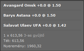 ez biztosítja azt, hogy az össz 4 eseményből a szokásos 4. papírforma elmegy esetén a 2 szelvény átlaga nyerő legyen. (2 egység be, 2.5 ki. de ha jön mind a 4, akkor 5 egység ki.)szigorú szabály, hogy a szelók között nem váltogatjuk a téteket.