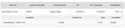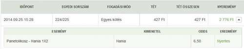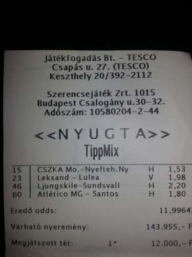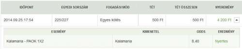 Viszont most nézem neked jó kicsi odds volt már rá...