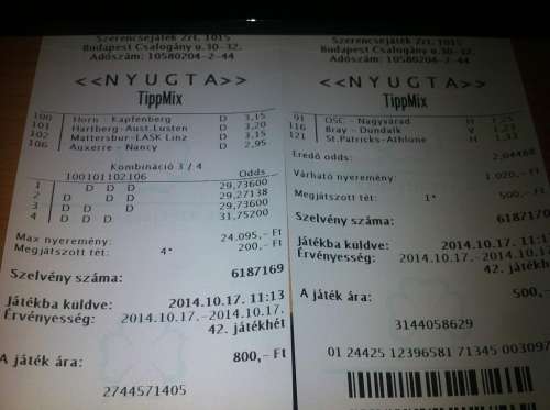 Sose értettem ezt a fajta gondolkodásmódot. Nekem momentán nem éri meg kockáztatni 40K-t 5-ért, ha már van felesleges 40K-m amit fogadásra költök akkor akár értelmes oddsot is rakhatok, amivel akár közel duplázhatok, az esély meg ugyanannyi hogy elmegy.akkor meg már nem mind1? -