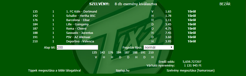 tét: 2k. körülTalán még a Dortmundot hozzáraknám 1,65-ért.