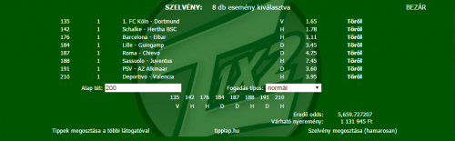 van egy szelóm, azon már csak a Real hendi kell (1000 --> 3600), a másik, hétvégi szelóm most indult a PSG-vel, kell már rá a City - Arsenal - Real - Roma (1000 --> 4100), hátha jönne mindkettő