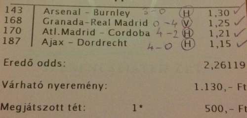 Ugylatom csak nekem nem megy ez a fogadas...nekem mindig van egy, ami viszi az esélyesek szelóját.