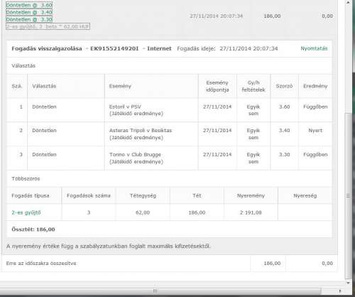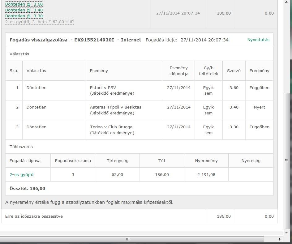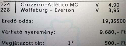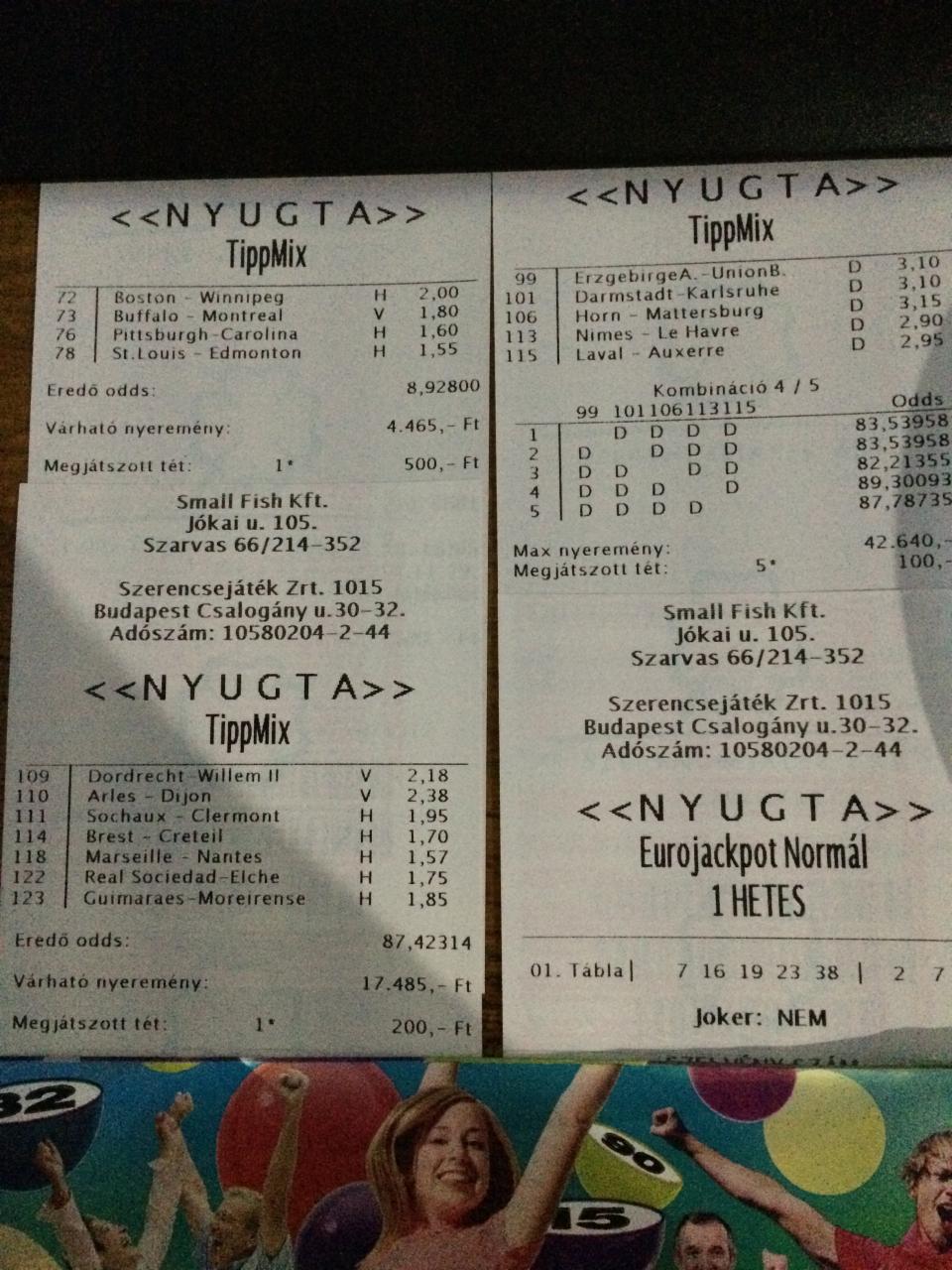 most pedig írom össze a pénteki és szombati szelókat, és most látom, hogy volt a 3 amcsi focira is egy feladnivaló. most nézem a cetlit. 6.41 eredő lett volna: