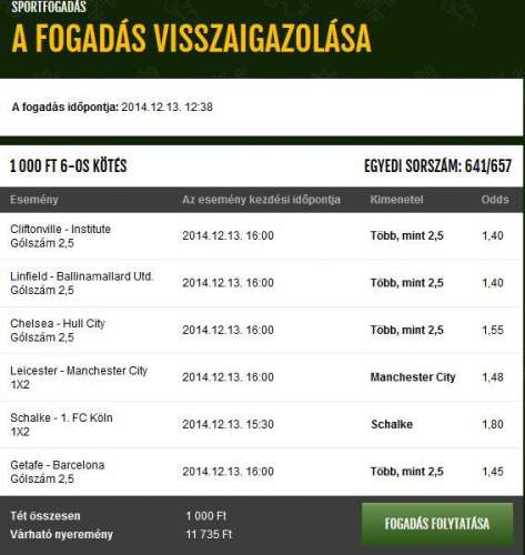 azon kívül a csodás 2-esek.csak az ő esetében nem értem, miért nem bontja fel 2/4-re, (6 kötés), ami a 800 ft helyett 1200 ft lenne, de a lekisebb kötései is elérik a 6* eredőt, így majdnem minden alkalommal legalább visszajönne a pénze...