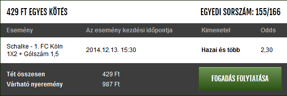 Schalke netes átlag már 1.90, kezdek félni tőle.
