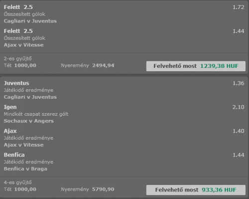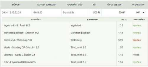 Esetleg majd a karácsonyi szezon alatt, meg újévben teszek pár darab 2-300 forintos meglepetést hátha valami betalál, ilyenkor mindig van pár bundás mérkőzés. -