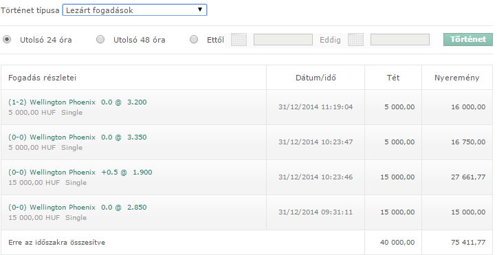 Szívem szerint tolnék még a Wellingtonra AH 0.0-ra a 4-es szorzó miatt vagy 20k-t...