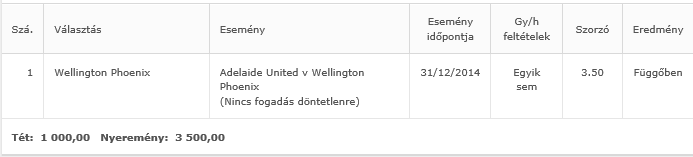 (tegyük hozzá, hogy a @2.85-as szorzó sem apró. ) -