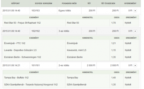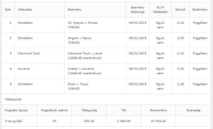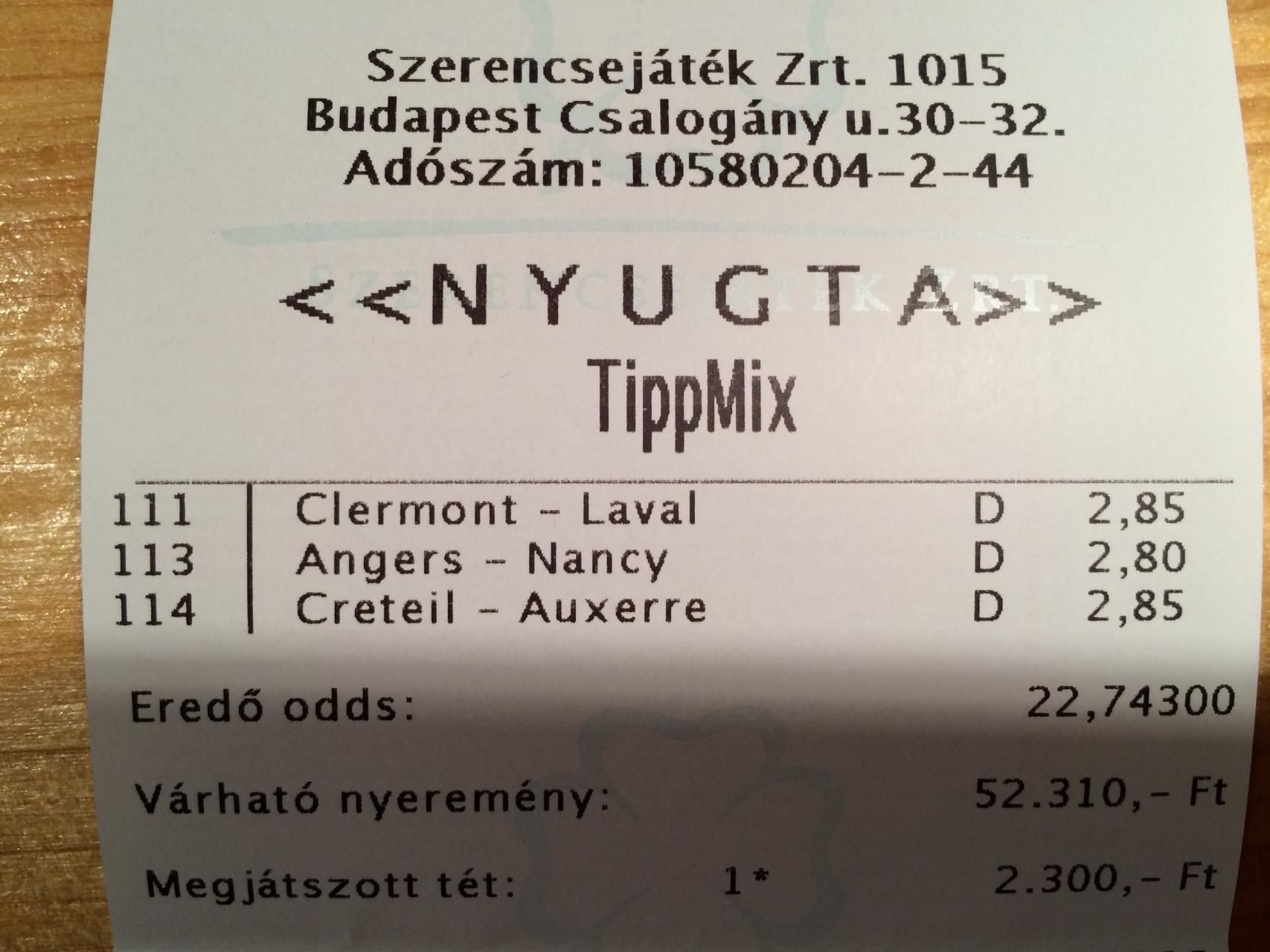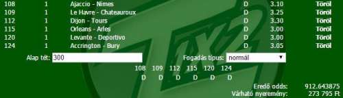 Dijon H, Creteil D és félidei X, a Montpellier és Levante meccsre, de szerintem ezeket már nem rakom meg, kivárok. Majd morgok a ~25ös oddsért