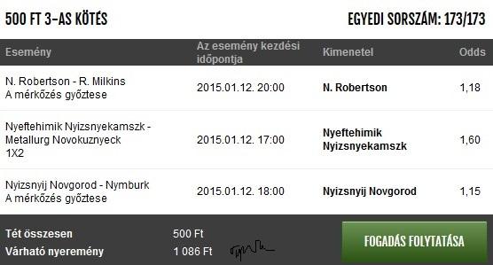 Tettem 1k-t rá én is. 1,875 volt az odds.