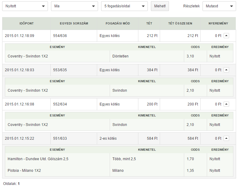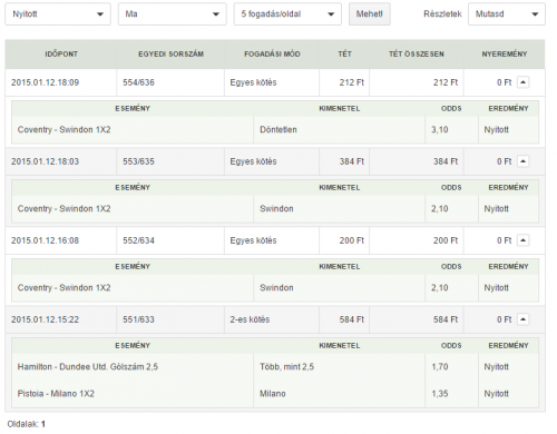 Természetesen ki is elemezzük az elmentett, megfogadott szelvényeidet és egy jól átlátható statisztikába folyamatosan vezetjük a profil oldaladon.