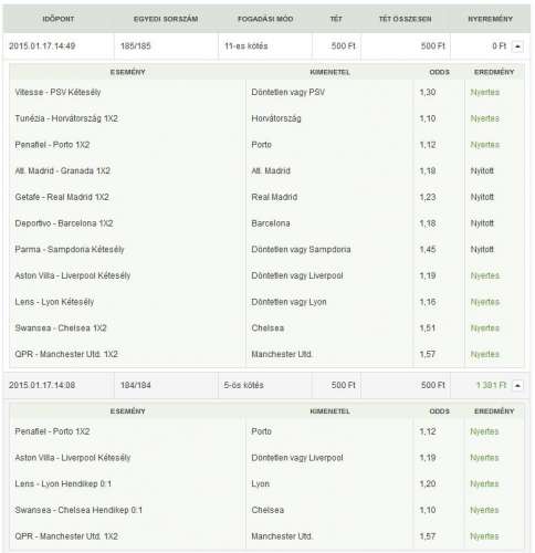 Másik: Nem azt kell nézni kinek hány meccs jött, hanem hogy neked abszolút nincs szerencséd a sok meccsekkel, így ha logikusan belegondolunk kevesebb meccsre mindig több az esély de ezt te is tudod. Ezért mondom/mondjuk hogy próbáld meg azt a vonalat ha a sok meccs sose jön...