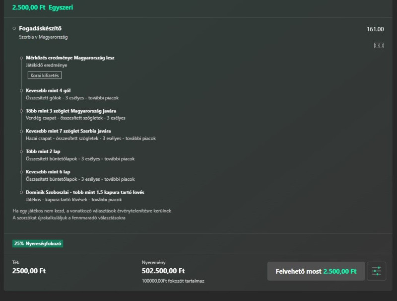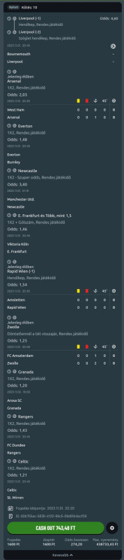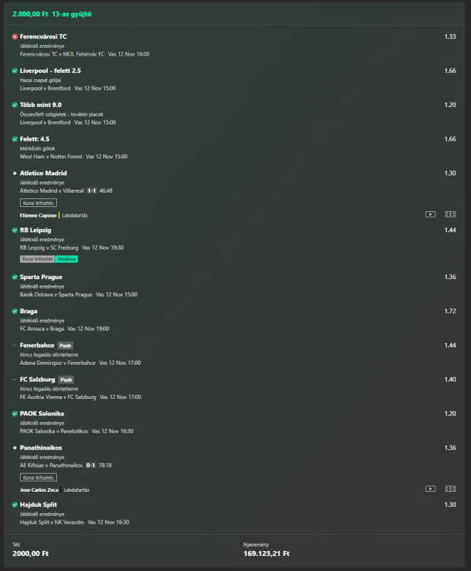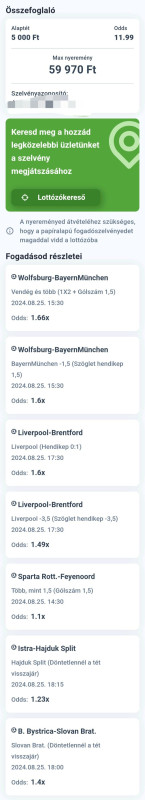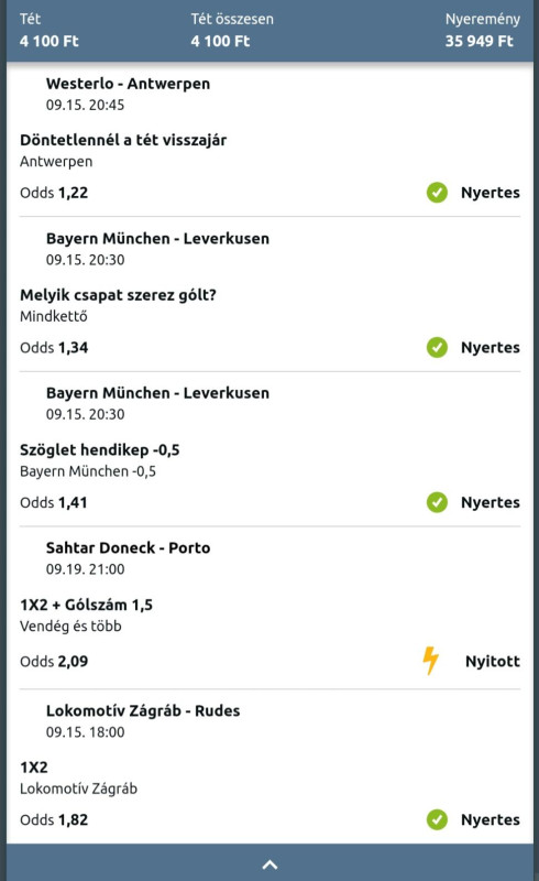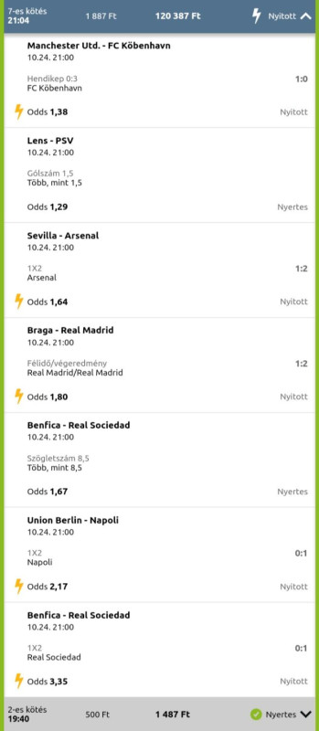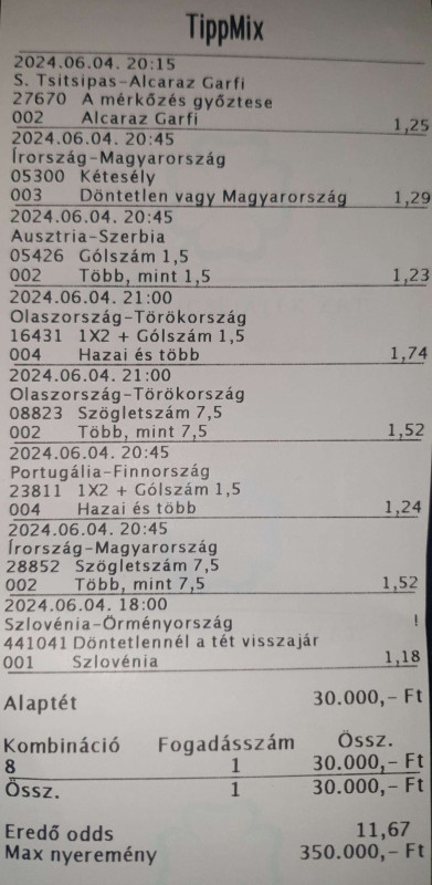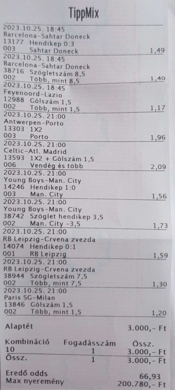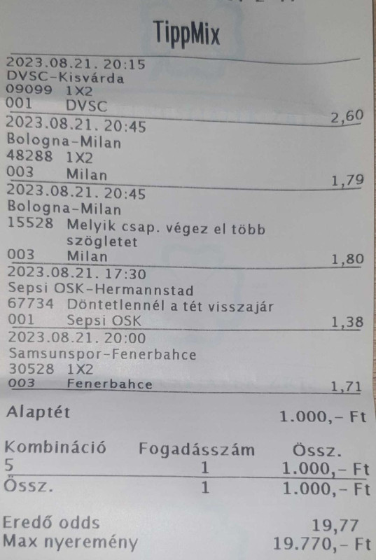 Beugrottam feladni egy szelvény és közölték, hogy úgy volt, hogy ma egy teljesen új rendszer indul náluk (hogy ez jó, vagy sem; avagy hogy a ~30-35%-val alacsonyabb szorzókat végre helyrerakják-e az nem derült ki) de ez tolódott és emiatt az olyan eseményeket ma nem tehetem meg, ahol egy mérkőzésr több fogadási esemény van....