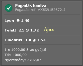 Picit sajnálom, hogy a Juventuson nem lett meg a 2,5 over, de minden nem jöhet össze sajnos....