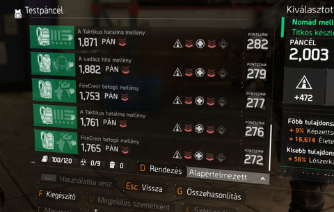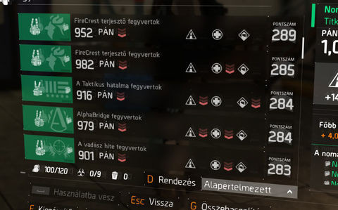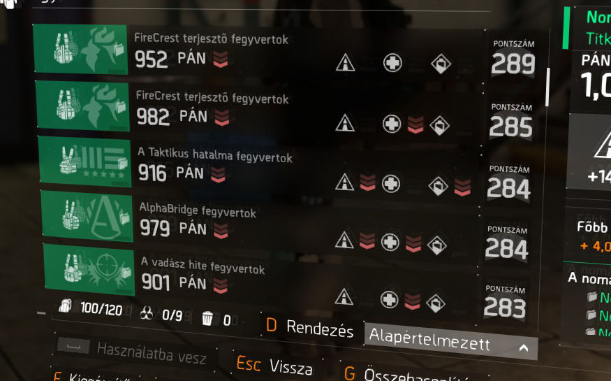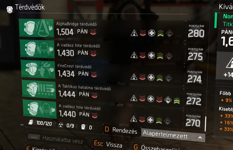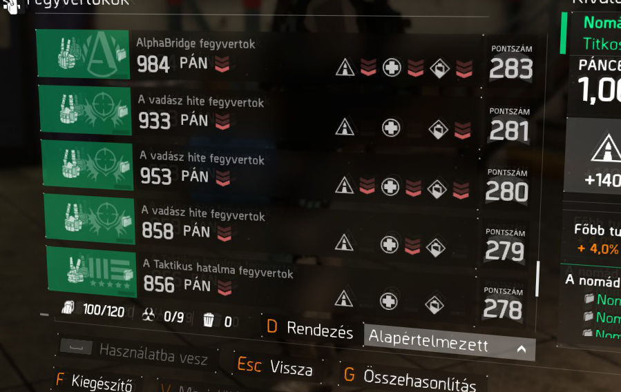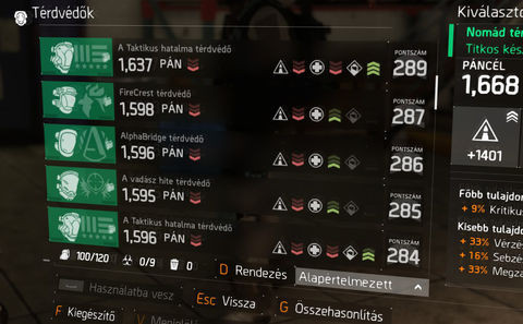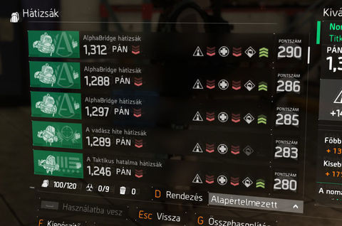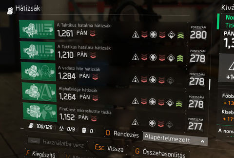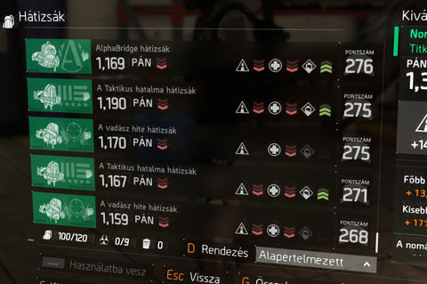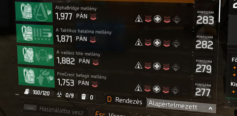 Ezekből az Elite sebzés a fontos. Képzettség helyett ha Páncélsebzés van, az sem rossz.Hátizsák: Képzettség vagy HP, alul bármi.